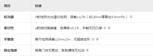 2. 铅玻璃:厚度按防护需求选择(如CT机房主防护≥2.5mmPb,对应厚度约18mm),密度≥4.2g/cm³,透光率≥85%,无气泡、划痕。